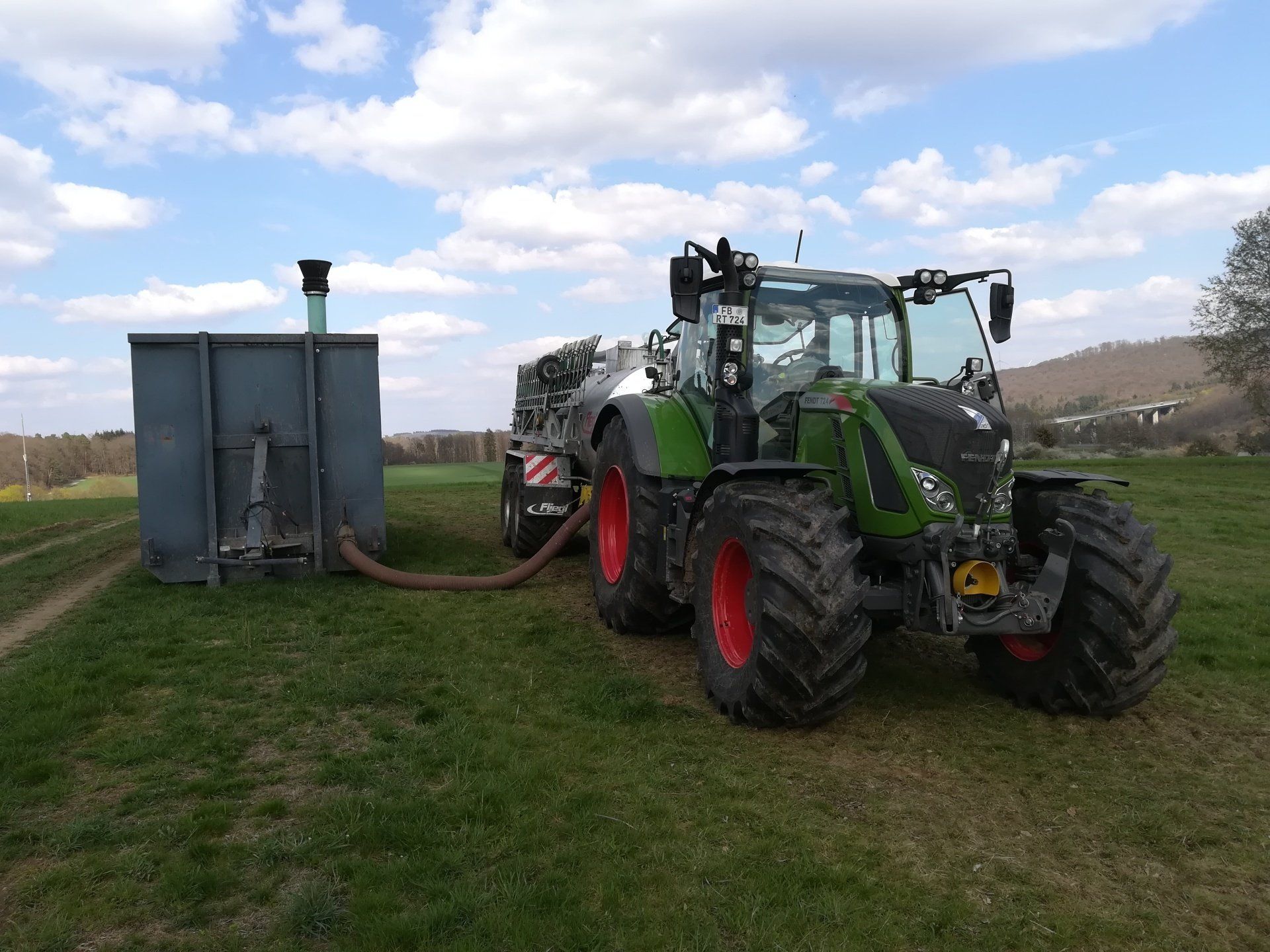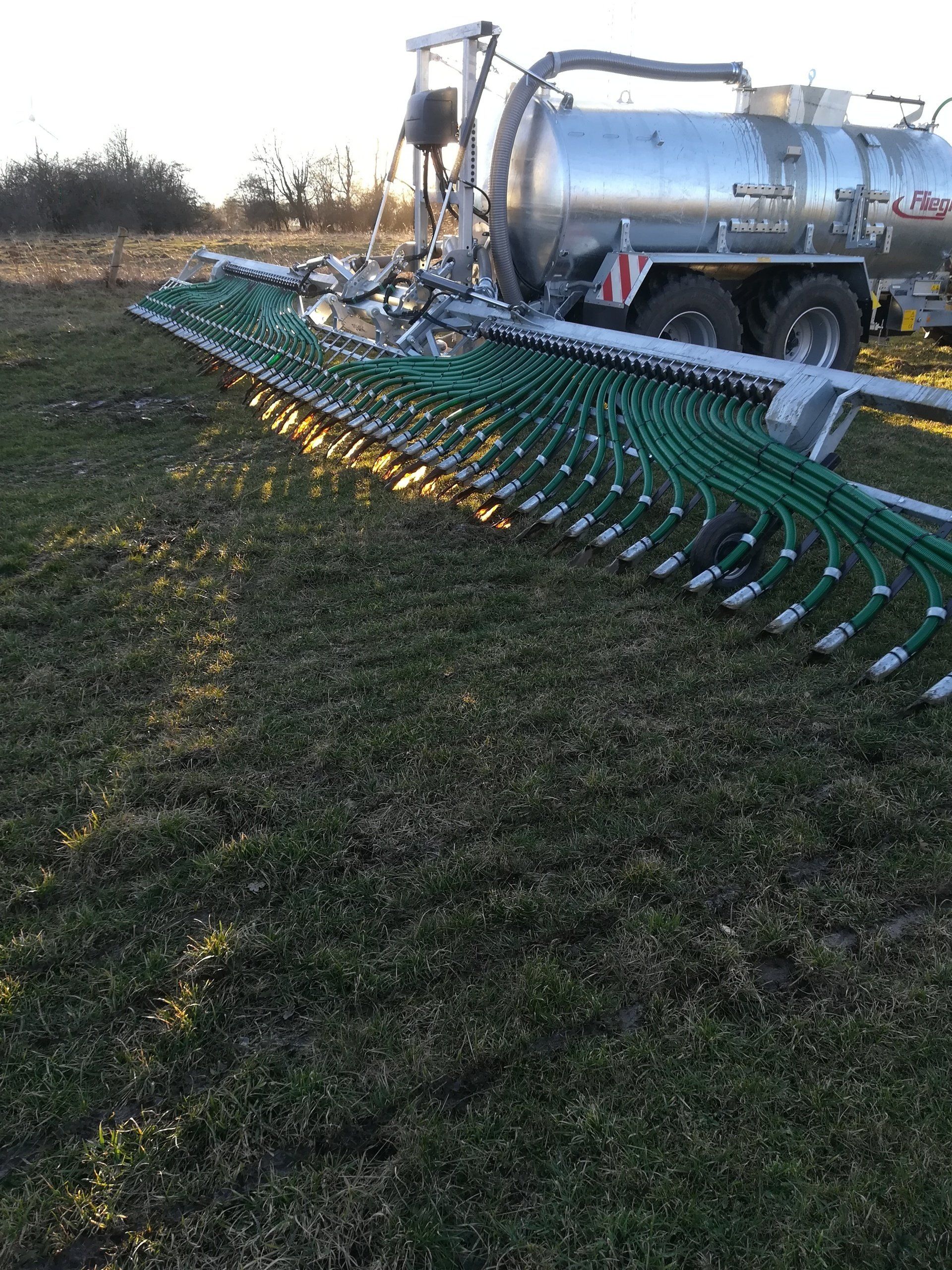 Seit dem 1. Januar 2019 biete ich die Ausbringung von Gülle und Gärsubstrat an. Hierzu wurde in ein 12m³- Fliegl MaxxLine-Pumpfass mit 15m-Schleppschuhverteiler investiert. Das Fass war von Februar bis zu Beginn der Ernte im Dauereinsatz und meine Kunden waren mit dem exakten Ausbringergebnis und dem geringen Bodendruck sehr zufrieden. Um eine genaue Ausbringung bei Tag und Nacht sicherzustellen, fahre ich mit Fendt-Varioguide und RTK-Signal. Bei Bedarf kann auch ein LKW mit 30m³- Zubringerfass und ein 45m³-Feldrrandcontainer angeboten werden.