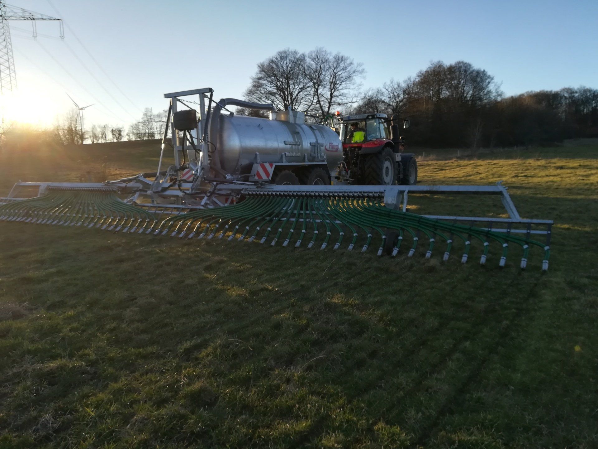 Im Zuge der EU-Düngeverordnung entschied ich mich 2018, meinen Betrieb weiter auszubauen und investierte in ein neues Güllefass, das allen Vorgaben der EU-Düngeverordnung entspricht. Wie sich zeigte, war die Entscheidung richtig und ich bekam sofort die ersten Anfragen von Kunden, die mir Aufträge für die Gülle- und Gärsubstratausbringung im Grünland und im Wintergetreide erteilten.